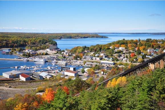 这是一座很有年头的瞭望塔,如今它已经成为一处绝佳的观景点,在塔顶上欣赏秋季的景色,尽情感受着大自然的无限魅力与积淀已久的人文情怀。在一个晴朗的秋日,当地枫林的红艳与Geogian 湾湖水的碧蓝形成了鲜明的对比,令人不禁感叹大自然的神奇。
